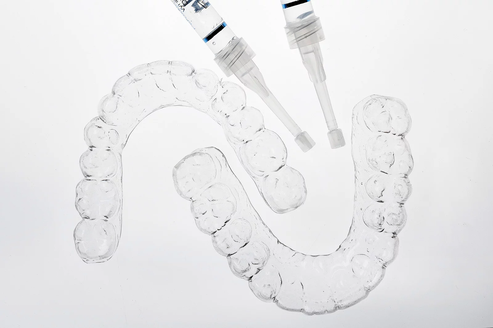 患者さんの歯型を取り、専用のカスタムトレーを作製します。歯並びに合わせて作るため、薬剤が行き渡りやすく、ホワイトニングを効率よく行うことができます。