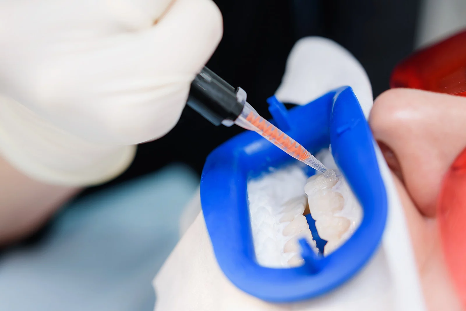 施術が始まったら、歯の表面にホワイトニング剤を塗布します。歯の黄ばみの原因となる色素に作用し、歯を白くしていきます。