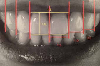 前歯の見え方には、見た目のバランスが美しく感じられる黄金比があります。一般的には、中切歯を1.618とした場合、側切歯は1、犬歯は0.618といった比率が目安とされています。こうしたバランスを意識することで、美しく調和のとれた笑顔に見えやすくなります。