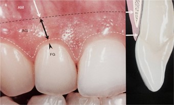 口元の美しさには、歯茎の見え方も関係します。当院では、被せ物を製作する際に生物学的幅径(Biological width diameter)を考慮し、歯茎との位置関係を踏まえて設計しています。歯茎との境目がなじみやすく、見た目にも美しく仕上がります。