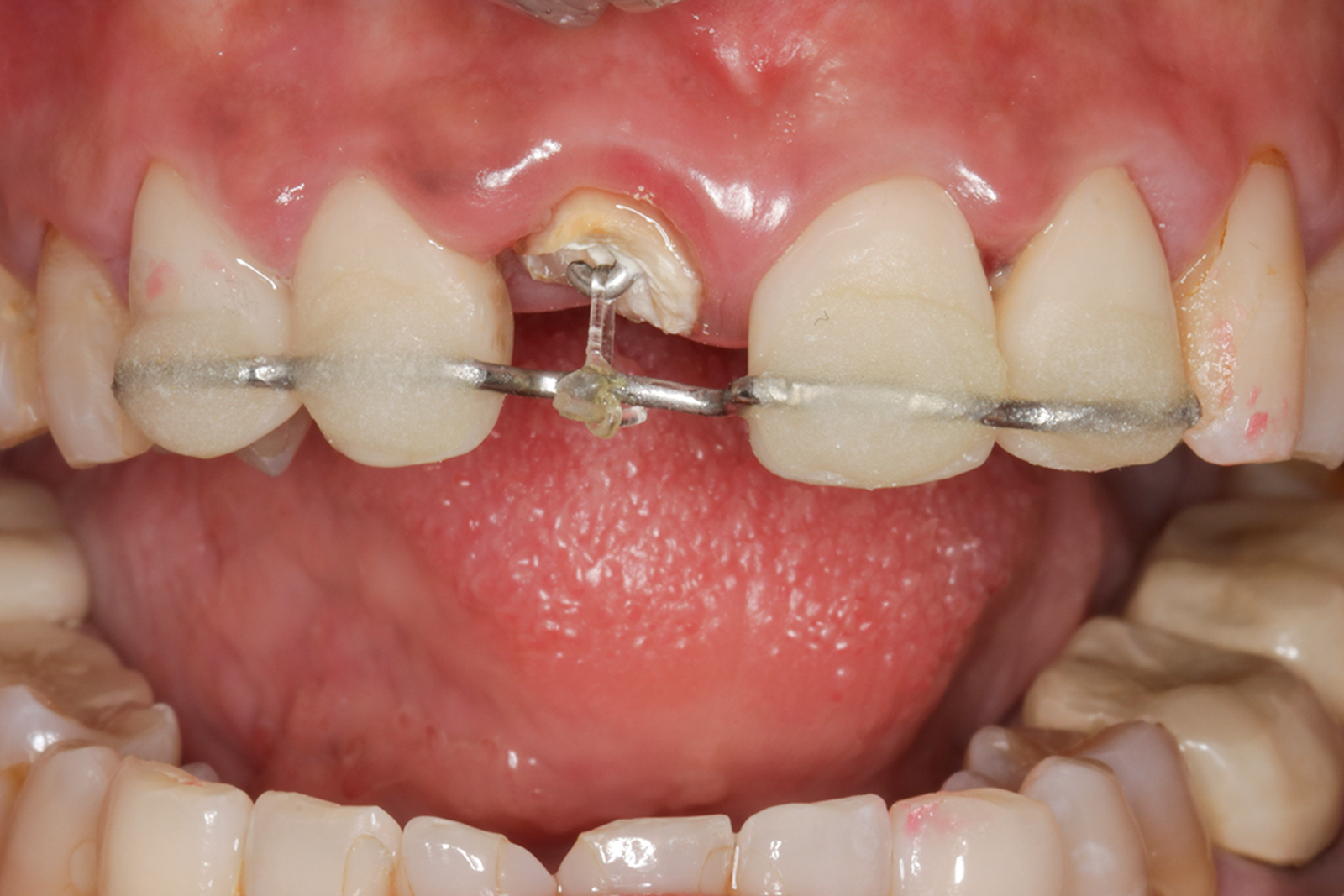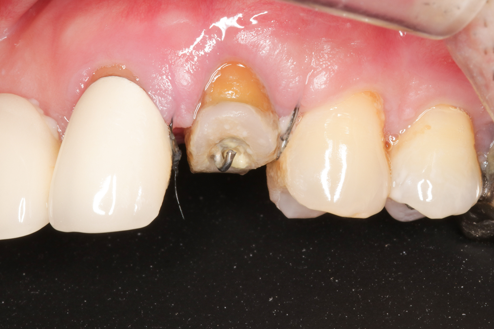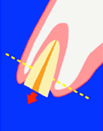 エクストリュージョンは、歯を少しずつ引き上げて、被せ物ができる状態まで回復させる治療です。